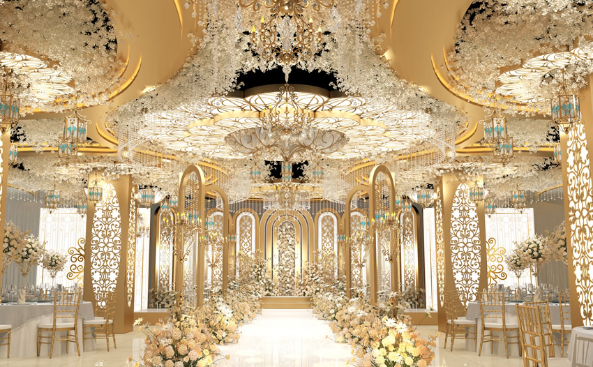 婚礼堂设计是一种专门用于举办婚礼和其他相关活动的室内设计。以下是一些关于婚礼堂设计的建议: